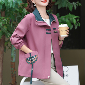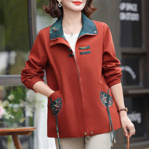 中年妈妈春装外套中老年女秋装短款夹克上衣2025新款国风洋气风衣