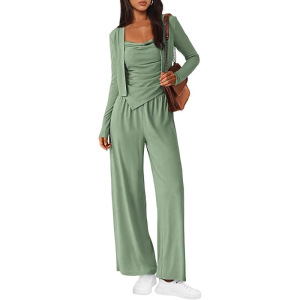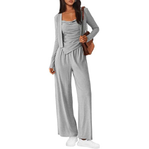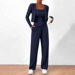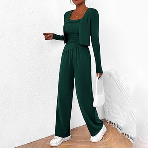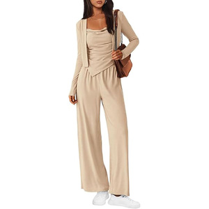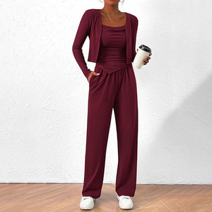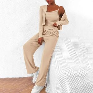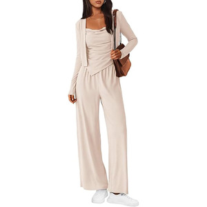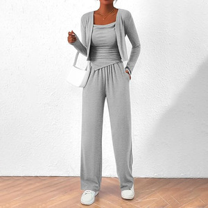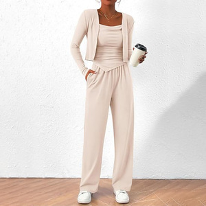 2025新款秋冬欧美跨境女士开衫三件套休闲套装开衫吊带阔腿裤套装