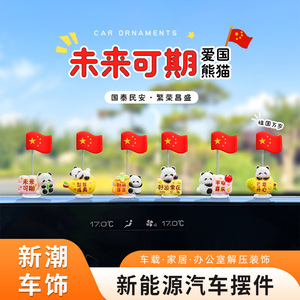 【未来可期爱国熊猫6款摇摆红旗+有钱花+大吉大利盆栽】送无痕贴