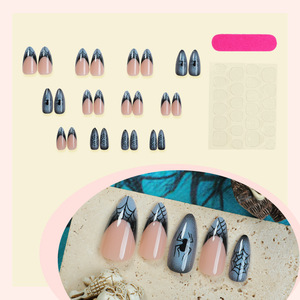 万圣节穿戴甲杏仁型蜘蛛法式边万圣节日卡通图案穿戴式甲片美甲片