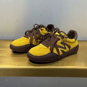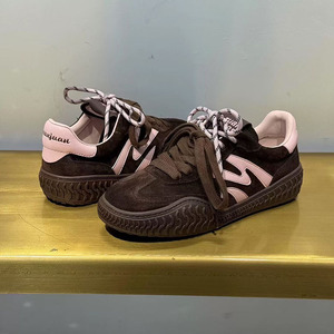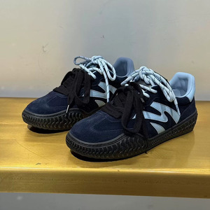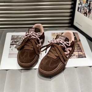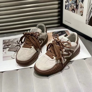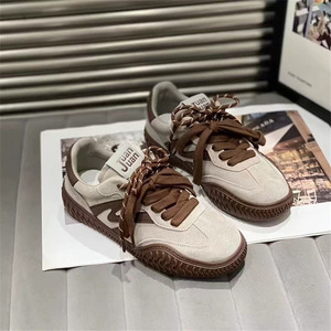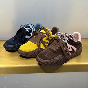 自主标~绑带厚底休闲鞋拼色德训鞋绒面复古平底阿甘鞋舒适运动鞋