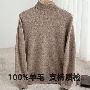 25年秋冬新款男士高领纯羊毛衫无缝羊毛衣套头翻领打底针织衫男
