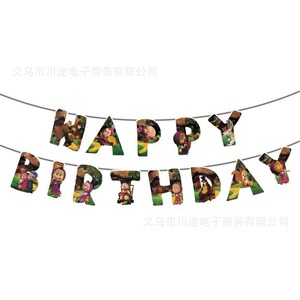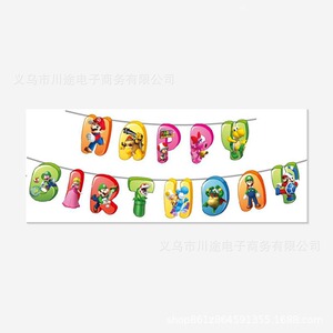 现货卡通生日快乐字母旗横幅拉旗 儿童生日派对主题装饰用品 厂家