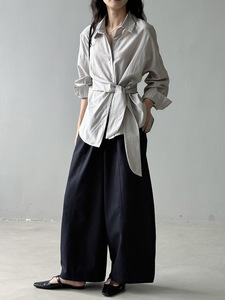 言双 天丝棉绑带收腰衬衫女 秋季翻领单排扣宽松显瘦衬衣82570