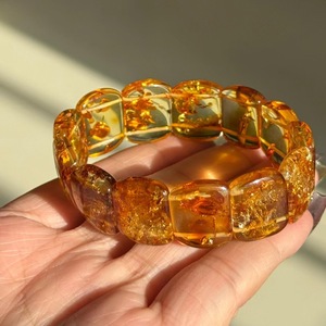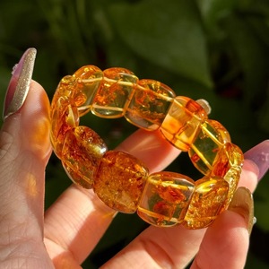 新款仿琥珀老蜜蜡手排复古人造花加宽手链男女款手饰批发直播爆款