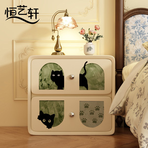 恒艺轩家用卧室奶油风实木床头柜轻奢高级感创意免安装床头收纳柜