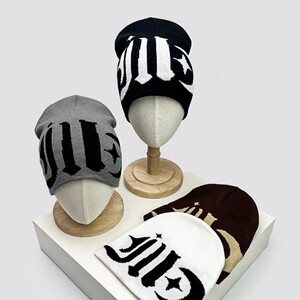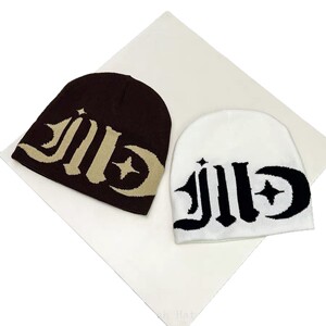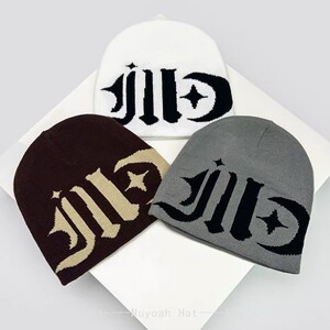 美式字母提花针织毛线帽子男秋冬保暖护耳登山帽双面戴潮酷冷帽女