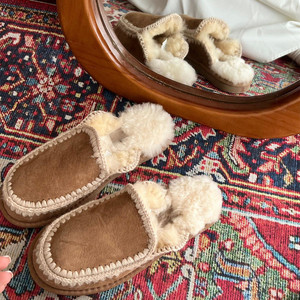 编织皮毛一体包头半拖鞋2025秋冬新款毛毛鞋平底外穿保暖拖鞋女