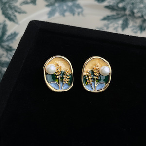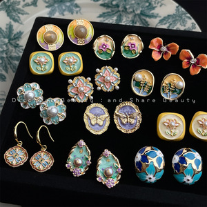 法式油画感珐琅滴釉耳饰小众艺术感宫廷风耳钉文艺复古耳环高级感
