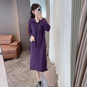 时尚法式连帽连衣裙女秋季新款小个子慵懒宽松休闲打底连衣裙紫色