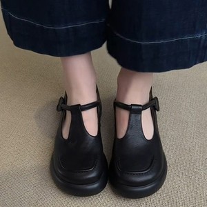 羊皮版~真皮复古简约圆头厚底玛丽珍鞋女通勤百搭黑色小皮鞋单鞋