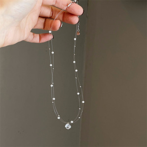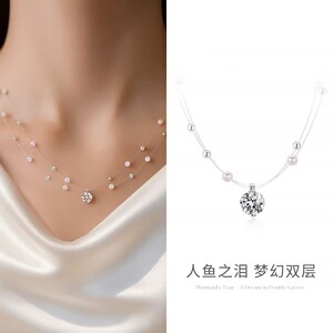 超闪满天星人鱼之泪双层项链闪耀时尚锆石吊坠毛衣链隐形锁骨链
