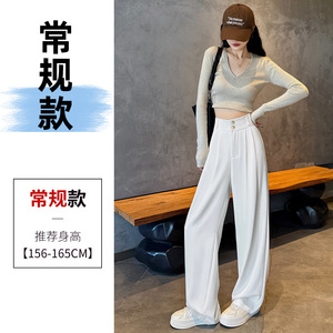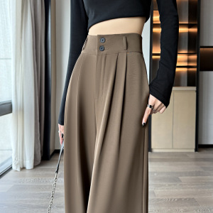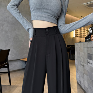阔腿裤女春秋高腰显瘦垂感梨形身材裤子直筒拖地裤双扣休闲西装裤