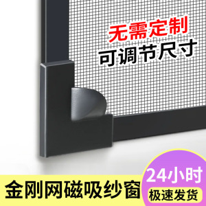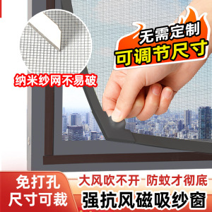 夏天防蚊虫磁吸纱窗免打孔强磁卧室阳台客厅可拆卸通风透光窗户网