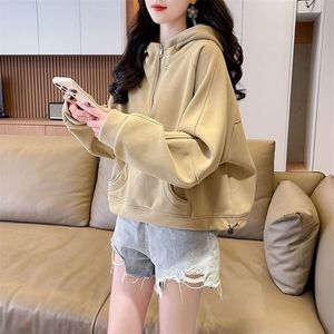 连帽卫衣女2025新款春秋宽松百搭显瘦慵懒风小个子纯色外套上衣潮