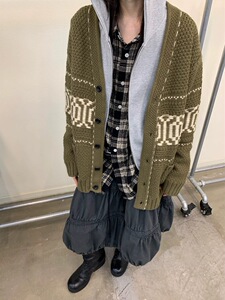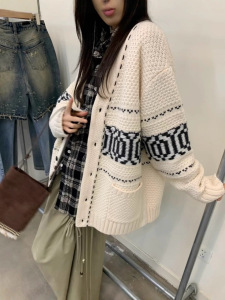 重工提花粗针针织开衫女2025秋冬新款韩系宽松慵懒风V领针织外套