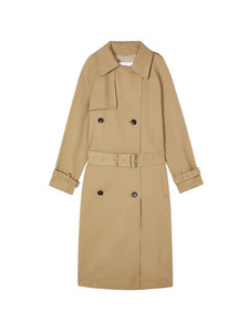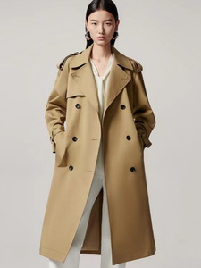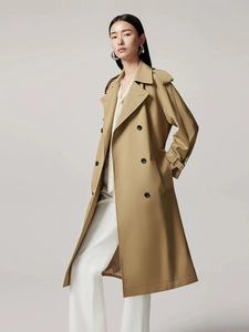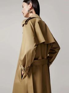 朗Z女装2025年秋新款气质系带双排扣棉感风衣中长款大衣外套女