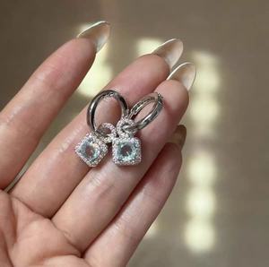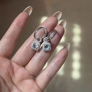 爆闪镶钻蓝色方糖锆石耳蜗钉独特耳扣耳环耳饰