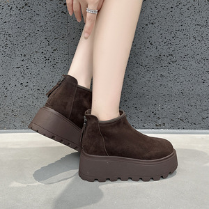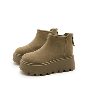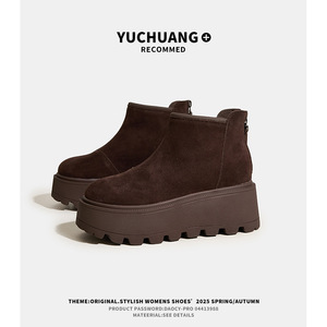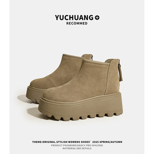 牛反绒厚底短靴女2025初秋磨砂皮内增高女靴高级感复古软皮马丁靴