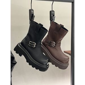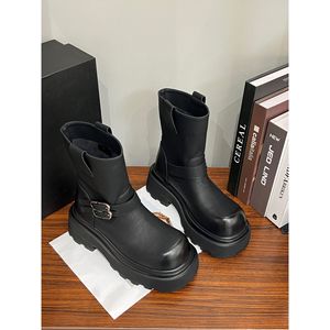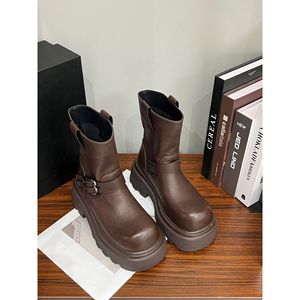 壹米恩2025秋冬新款真皮复古厚底增高时尚百搭英伦风皮带扣短靴女