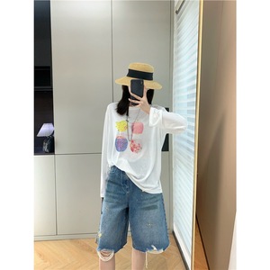 春不晚清凉一夏 水果印花轻薄垂坠凉感柔软亲肤防晒冰丝长袖T恤女