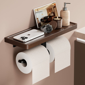 胡桃木卫生间纸巾盒免打孔加长卷纸架浴室洗手间厕所卫生纸置物架