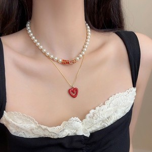 法式轻奢镂空爱心吊坠项链小众设计感双层叠戴珍珠颈链时尚颈链女