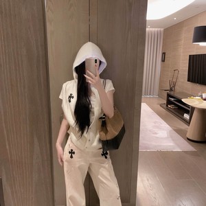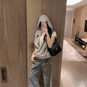 2025秋冬季女装新款时尚洋气十字架连帽针织马甲宽松开衫外套上衣