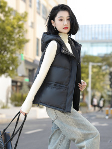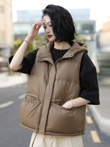 90鸭绒羽绒马甲女短款2025年秋冬新款韩版宽松轻薄羽绒服马夹连帽