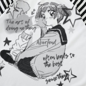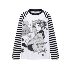 Fudge Pink 25秋季New美式复古个性人物印花插肩长袖上衣