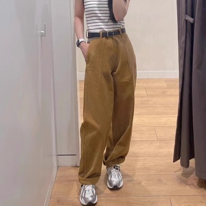 URAZ合作款女装秋牛仔风打褶长裤水洗产品阔感裤牛仔裤471631