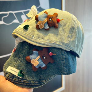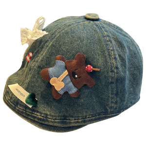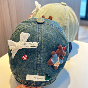 2025新款可爱甜美小熊蕾丝蝴蝶结前进帽子女百搭出游贴布报童帽