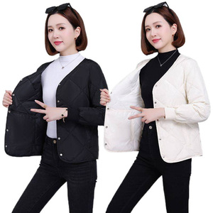 小香风女款无领菱形格小个子内搭轻薄保暖短款冬季羽绒棉服外套