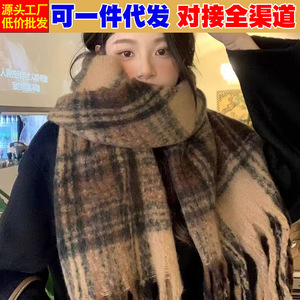 厂家批发围巾女冬季高级感加厚保暖仿羊绒格子围巾韩版百搭围脖潮
