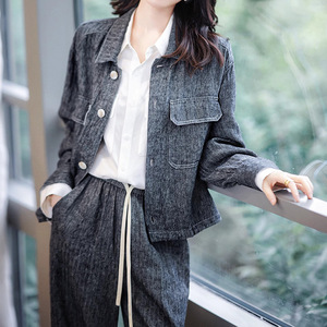 《弗洛伦萨套装》亚.麻*棉 翻领外套+阔腿裤/松紧腰2025秋季新款