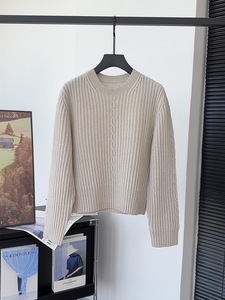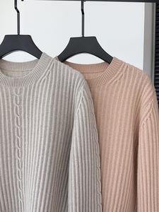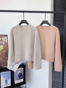 25早秋新品L/P意奢休闲百搭纯色圆领麻花加厚通勤针织长袖上衣女