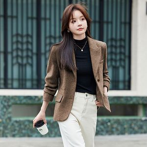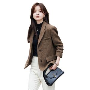 灯芯绒粉色西装外套女秋冬季2025新款短款小个子气质修身加厚西服