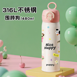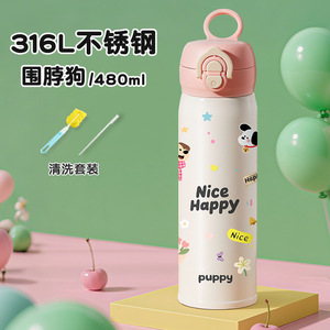 【316不锈钢】围脖狗-480ML(一盖双饮+杯刷/吸管刷+免费刻字)