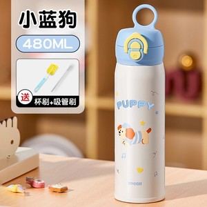 【316不锈钢】小狗蓝-480ML(一盖双饮+杯刷/吸管刷+免费刻字)