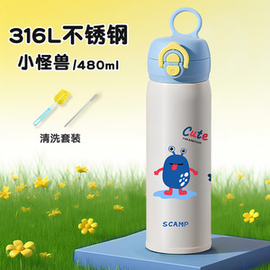 【316不锈钢】小怪兽-480ML(一盖双饮+杯刷/吸管刷+免费刻字)