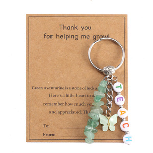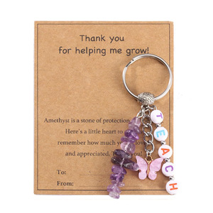 水晶钥匙扣感恩教师礼物英文字母粉色蝴蝶钥匙扣水晶碎石钥匙扣