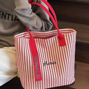 夏季条纹帆布包包女新款大容量上课手提袋韩系单肩通勤托特包