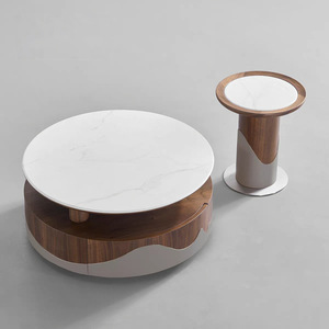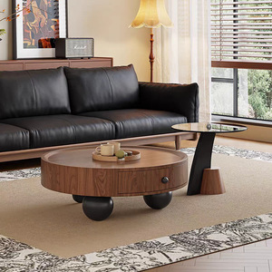 客厅设计师款中古风轻奢奶油风圆形茶几边几组合异形茶几沙发角几