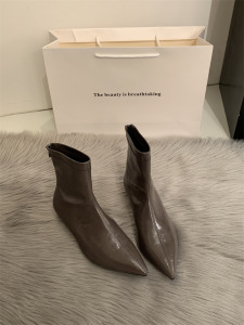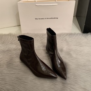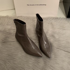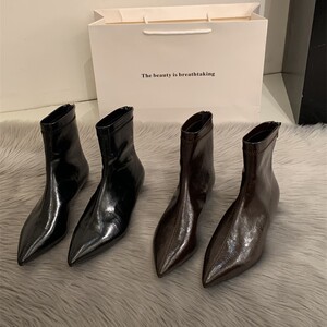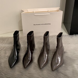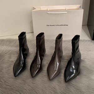黑色高跟短靴女2025秋冬单靴及裸踝靴软皮小跟尖头法式细跟瘦瘦靴