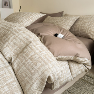 格纹-卡其【100%全棉面料轻奢双层纱提花工艺】