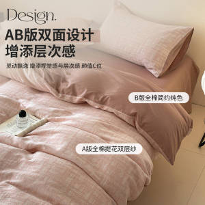 双层纱提花床上四件套纯棉全棉四季通用2025款床单被套轻奢品