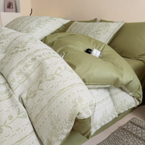 柔茵-草绿【100%全棉面料轻奢双层纱提花工艺】