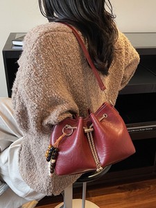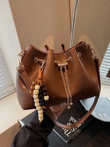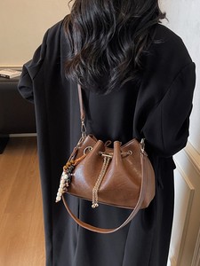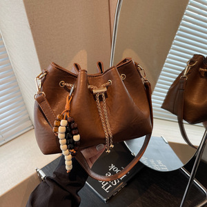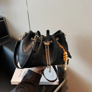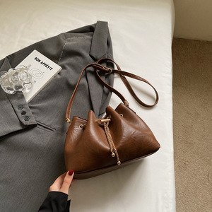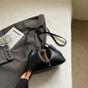 外单2025韩版潮单肩包感休闲女包时尚褶皱束口水桶包时尚斜挎小包