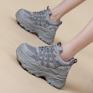 8CM四条杠内增高老爹鞋女2025秋季小个子百搭洋气学生休闲运动鞋