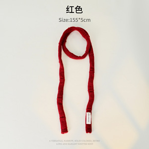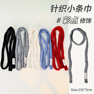 日系纯色彩点细窄长款围巾女秋冬季辣妹凹造型装饰针织细长条围脖
